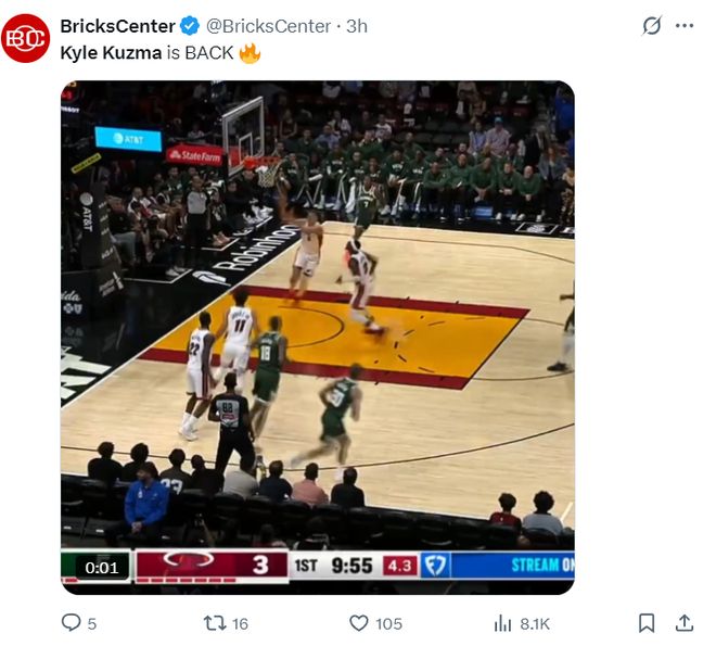 這場比賽首節(jié)開場庫茲馬命中第一個球后就開始了瘋狂的打鐵、三不沾之旅,這一球他面對威金斯后仰中投直接來了一個中投三不沾,雄鹿替補席都沒眼看,現(xiàn)場有噓聲出現(xiàn)。
